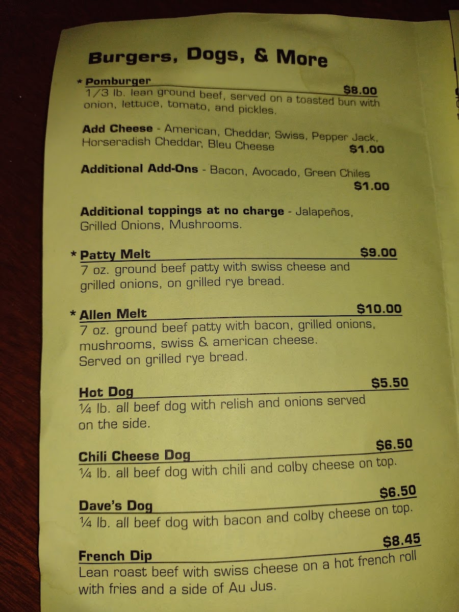 In addition to food options, Pomeroy's serves a range of beverages including beers such as 805 Beer and classic cocktails like the Manhattan. The menu items generally align with casual dining and quick ordering, providing hearty meals suitable for lunch, dinner, or accompanied bar visits.